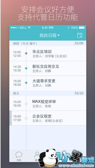 无论您是在办公室使用PC、或是在差旅途中使用智能手机,都可以随时与其他人沟通,而且消息相互同步,无缝衔接,不用重复确认已经处理过的消息。全时蜜蜂提供日程公开功能,在安排会议的过程中,查询每个人的空闲时间,找到最合适的时间,确保重要的人能参加安排的会议。 蜜蜂整合了最简单好用的全时会议,任何时间、任何地点、不受网络限制,就可以随时开会。支持 PSTN 与 VoIP 融合,随时切换;焦点视频,自适应视频切换;共享屏幕与文档,清晰流畅。