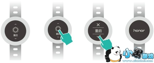您可以在手环上点击并滑动屏幕至重启界面,点击重启图标,根据界面提示重启手环。