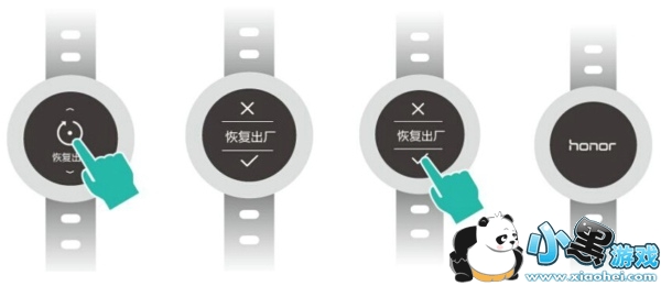 您可以在手环上点击并滑动屏幕至恢复出厂界面,点击恢复出厂图标,根据界面提示恢复出厂设置。