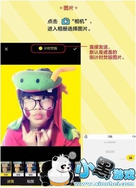 第五步:点击相机,进入相册选择图片,默认是遮盖的,倒计时焚毁图片。