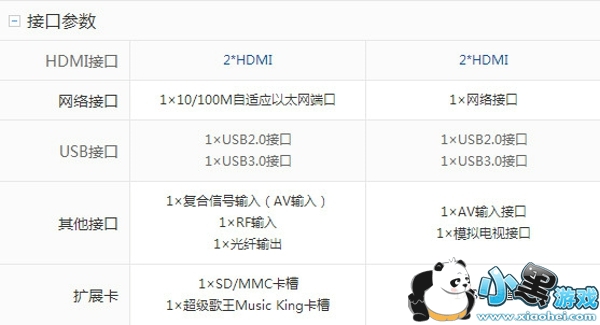 新一代H.265格式视频硬解码,能播放对应编码格式的在线视频,让你在同样带宽下有更高品质、更清晰、更流畅的视频体验。而本地视频播放能力也一样强劲,支持几乎所有格式视频的高清播放。2款电视接口丰富,HDMI、USB3.0及多种音视频端口,连接兼容多种设备:电视机顶盒、游戏机、蓝光播放器或电脑,也支持超级枪王、手势体感摄像头等娱乐配件,还可以连接家里的音响系统,为你带来便捷使用体验。