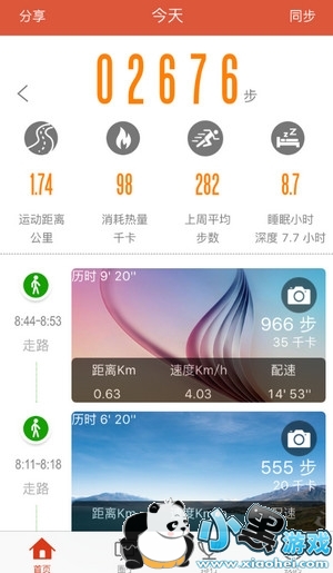 APP界面还是非常简洁,一目了然,最上方显示的是当天的步数,然后下方四个灰色小图标分别显示的是公里数、消耗热量、上周平均步数以及睡眠情况。