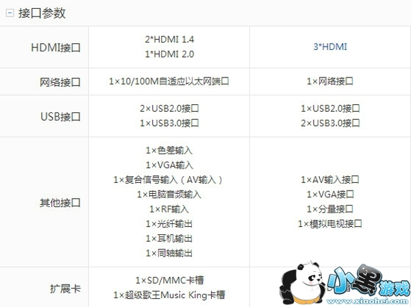 乐视x50搭配了SD大卡接口,每次相机拍完的照片可以直接在超级电视上播放。USB3.0接口秒传输速度高达500MB/s,除此之外,拥有包括HDMI、USB3.0、等在内的17个接口。本地播放高清视频从此再无压力。