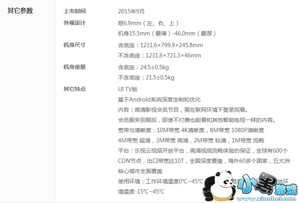 2.乐视超级电视3 X55 Pro配对的都是新一代32位专家级智能电视芯片,Cortex A17架构CPU和旗舰GPU带来强大的动力,即使60帧的H.265格式4K视频也轻松处理。2GB的高速内存,加上提升近3倍的Wi-Fi连接速度,超3让你玩游戏,看视频都有疾速的体验。