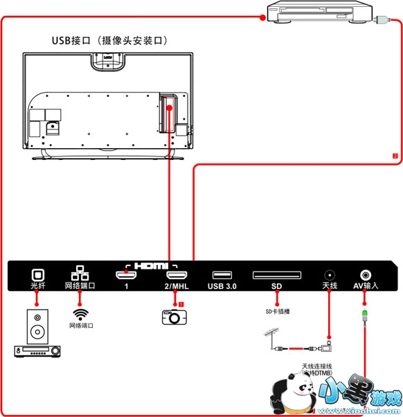 下面就乐视超3 X40是否有三色视频接口,来看看超级电视X40的链接配置。