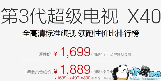 乐视 X40 第三代超级电视。这款电视拥有40寸的大面板,1920×1080的分辨率拥有细腻清晰的色彩,给你带来近在眼前的逼真,让你在高清的栩栩如生画面上,体验毫发如丝的细节。超3 x40的进口LGD全高清液晶面板,色彩真实,它的高透光技术,响应速度更快,动态清晰度表现优异。