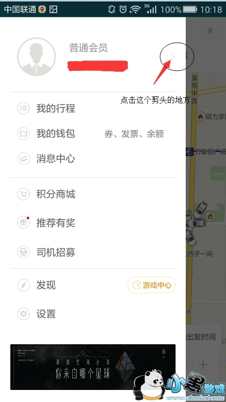 第二步:进入普通会员界面,点击灰色箭头的标志。如下图: