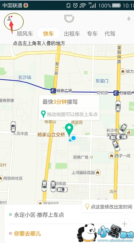第一步:滴滴用户打开滴滴出行APP,进入界面后点击有【人像】的地方。如下图:
