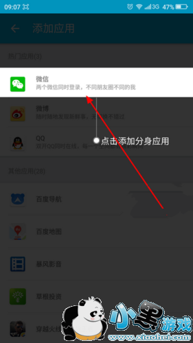 第三步:点击添加分身应用,软件先以微信为例,如下图所示: