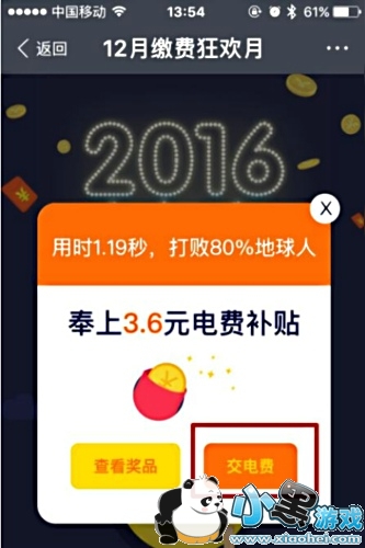 第四步:然后频繁点击充电进行抢红包,等充电满之后,您就可以看到您获得的电费补贴情况了;