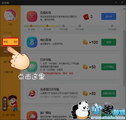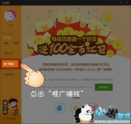 第一步:运行发发啦客户端,点击左侧导航的“推广赚钱”进入推广页面。