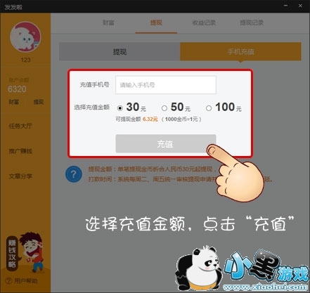 第二步:输入提现金额(人民币),点击“提现”按钮。(当前1000金币 = 1元)