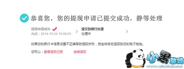 4、提现申请递交成功后。提现款项会在第二个工作日内到账。