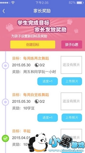 4.设置的目标、奖励不能修改,但完成进度可以由家长控制;待目标完成后由家长进行奖励。