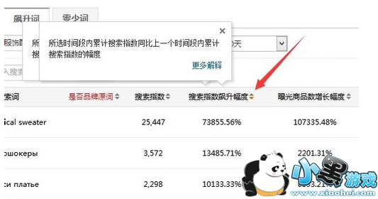 第七步:这个里面我们需要注意一个重要指标-搜索指数飙升幅度