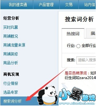 第三步:接下来我们主要讲的是“搜索词分析”这个功能,利用好这个功能会让你店铺的曝光量有很大提升,而里面的一些关键词可以让我们捕捉的一些爆款潜质的产品。