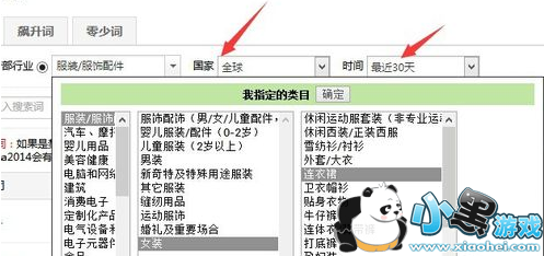 第四步:然后进入,我们开始选定行业,另外这里注意一点,选定时间最好为30天,这样更方便我们来查找相关产品的上升趋势。选好行业以后点击“确定”就会自动筛选了。