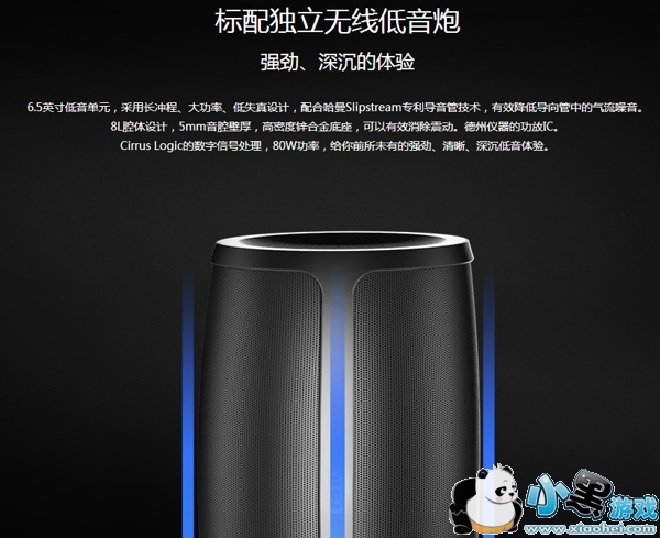 独立无线低音炮6.5英寸低音单元,采用长冲程、大功率、低失真设计,配合哈曼Slipstream专利导音管技术,有效降低导向管中的气流噪音。8L腔体设计,5mm音腔壁厚,高密度锌合金底座,可以有效消除震动。德州仪器的功放IC。Cirrus Logic的数字信号处理,80W功率,给你前所未有的强劲、清晰、深沉低音体验。