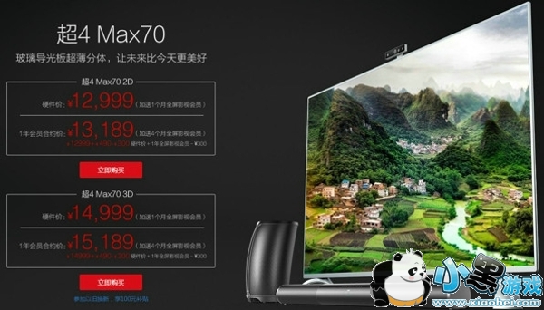 此外,乐视分体超4 Max703D版本具有出色的3D立体效果,让你在家即享立体逼真的画面。