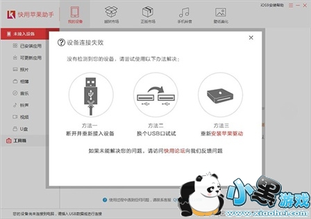 注意:如未成功连接,可根据快用苹果助手的提示重新链接设备