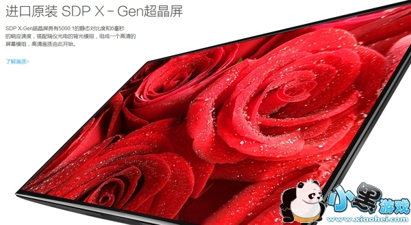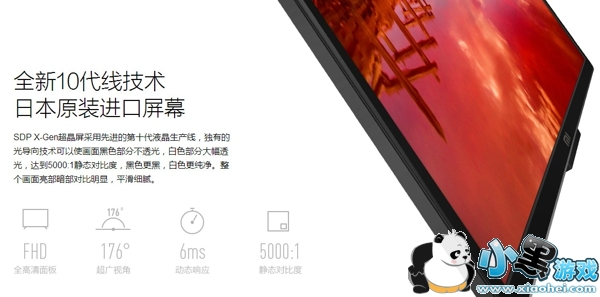 据小米方面称,这块1080P夏普SDP X-Gen超晶屏采用全球最先进的第十代液晶生产线,可达到5000:1超高静态对比度。其独有的光导向技术可以使画面黑色部分不透光,白色部分大幅透光,实现黑色更黑、白色更纯净。