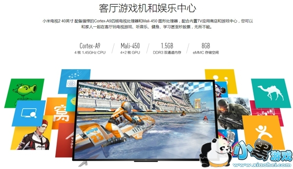 小米电视40寸可以说看点多多,首先用夏普屏保证了画质与观感,用DOLBY、 DTS音频双解码保证听感,再辅以MStar 6A908方案保证性能。深入定制的UI保证易用性与流畅度,双频率WIFI保证无线互联速度,同时强大的共享功能,及无线投屏、蓝牙手柄支持与丰富的游戏资源,与正牌运营商强强联手更及时的更新更稳定的速度。