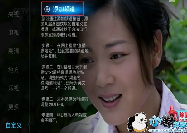 一般的盒子里面都带有“自定义”功能,可以通过连接频道按钮,添加从服务器获取的自定义直播源,如图: