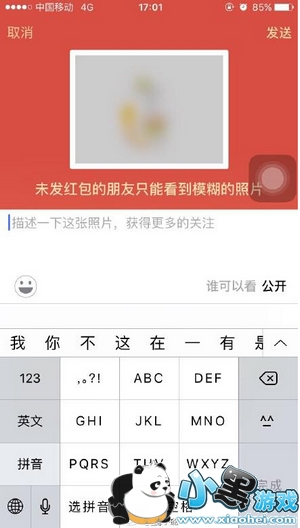 用户点击发布朋友圈按钮,可以看见“红包照片”选项,选择发布照片后,该照片将被模糊处理发送到朋友圈,好友如需评论或看清照片,需向好友发送红包,金额由微信随机决定。