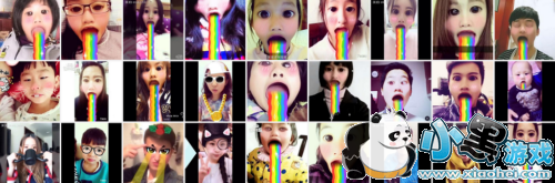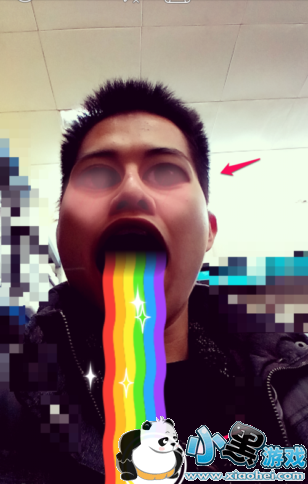 第三步:选好【全民吐彩虹】特效后,你只需对准镜头,然后把嘴张开就能看到彩虹从口出流出了。