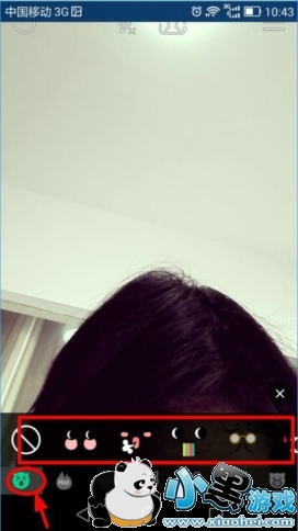 第二步:然后就可以选择你自己的主题和素材来拍摄了,点开下面的【小熊】图标就可以看到哦,有【傻逼】特效、【火眼金睛】特效、【全名吐彩虹】特效。