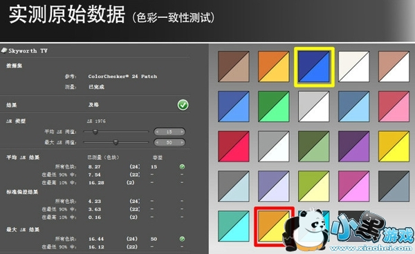 小结:从仪器的测试数值和从屏幕实拍的测试画面来看,创维在色彩性能方面都有着出色的表现,色域值89.98%水平居国产电视前列,色彩还原性方面虽然有些测试 画面会出现颜色的偏移,但总体来说色彩还原还算真实,因此我们给予其色彩方面8.5分的高分。