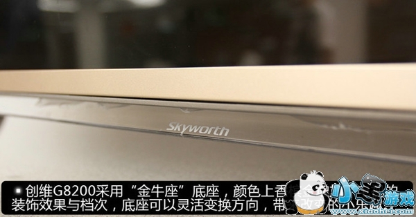 如今讲究审美的时代,笨重的黑家电只会带给人压抑的感觉,好的产品设计则能带给人视觉上的享受,电视也不例外。现在正处于电视以“薄”为美的时代,薄边框带给人的时尚高贵的感觉。创维G8200采用了超薄边框设计,加之灰色硬质金属边框以及土豪金面板框,散发高贵气息。底座采用“金牛座”设计,科学受力保证面板稳固。