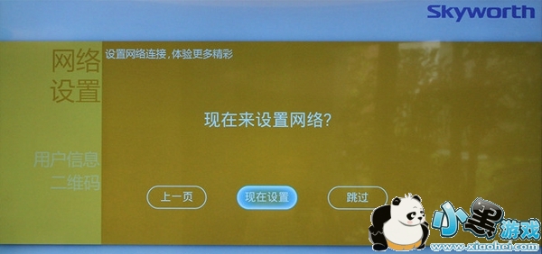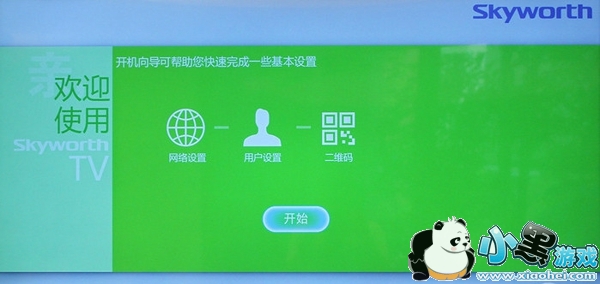 酷开系统的开机界面为各个提示导航界面,通过不同颜色的设计做到很好的区分不同的设置,引起用户的兴趣并引导用户耐心的读完并按要求进行设置,体现了设计者独具匠心以及人性化,用户无需再寻找“设置”进行初始化的参数设置。