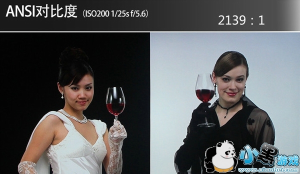 ANSI对比度测试方法采用16点黑白相间色块,8个白色区域亮度平均值和8个黑色区域亮度平均值之间比值即为ANSI对比度。在之前仪器的亮度值测试中创维G8200的平均亮度216cd/㎡,数值十分接近要求值,因此其在黑白的表现上丝毫没有半丝逊色,两位衣着打扮为黑白的模特在各自反相的背景中,各种细节都能够很到的得到展现,没有一点压力。