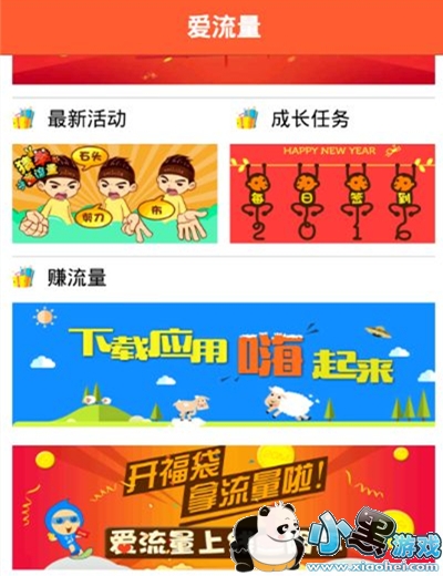 三、此外,在爱流量首页中,滑动界面到赚流量专区,可以看到下载应用赚流量,新年大调查,开福袋拿流量,还微公益活动赠送流量,点击相应的界面,进入之后会有详细的活动规则及流量赠送说明,按照步骤进行操作即可。