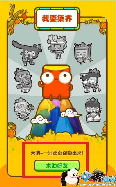 第一步:点击召唤之后,有几率直接召唤出一个福禄娃,如果没召唤出来,可以求助好友,就有机会直接全部收集到。