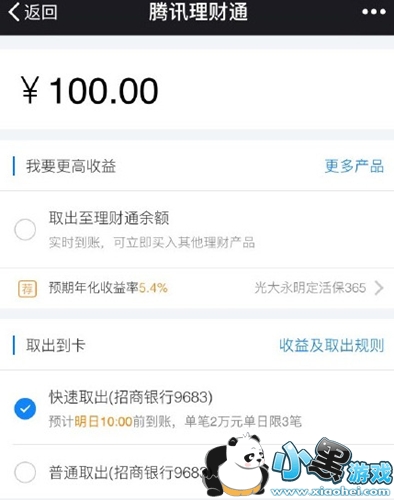 第三步:将刚买的理财通提现到你的银行卡就OK啦!