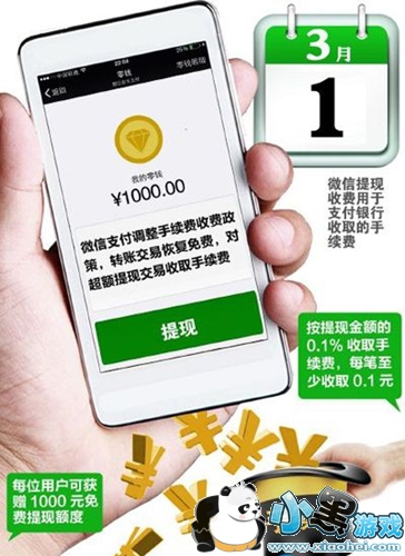 自3月1日起微信支付转账功能将停止扣除手续费,但提现功能将会开始收取手续费!