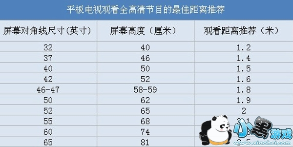 下面在附一张观看电视距离对应表,然大家更清楚了解下。