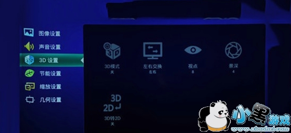 3、3D菜单是一个独立的菜单,一级菜单包含了3D模式、左右交换、视点、景深、3D转2D五个版块。