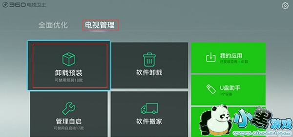 | ![]() 2、点击进入360电视卫士,选择电视管理——卸载预装。