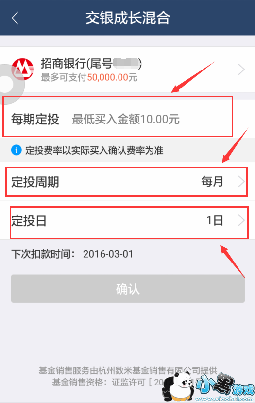 6、(定投周期有三种选项:分别是每月、每周、每两周)