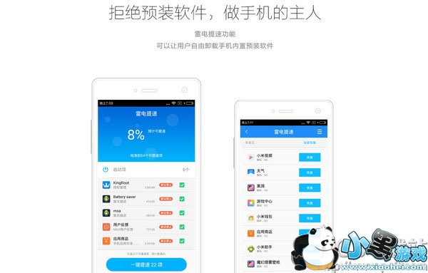 雷电OS零预装软件,做手机主人,雷电提速功能可以让用户自由卸载手机内所有的内置预装软件,