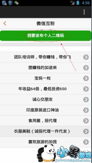 4、接下来看看“微信互粉”吧,可以通过发布自己个人的二维码哦,你只要将你的二维码发布出去了,就会有更大的可能获得粉丝哦