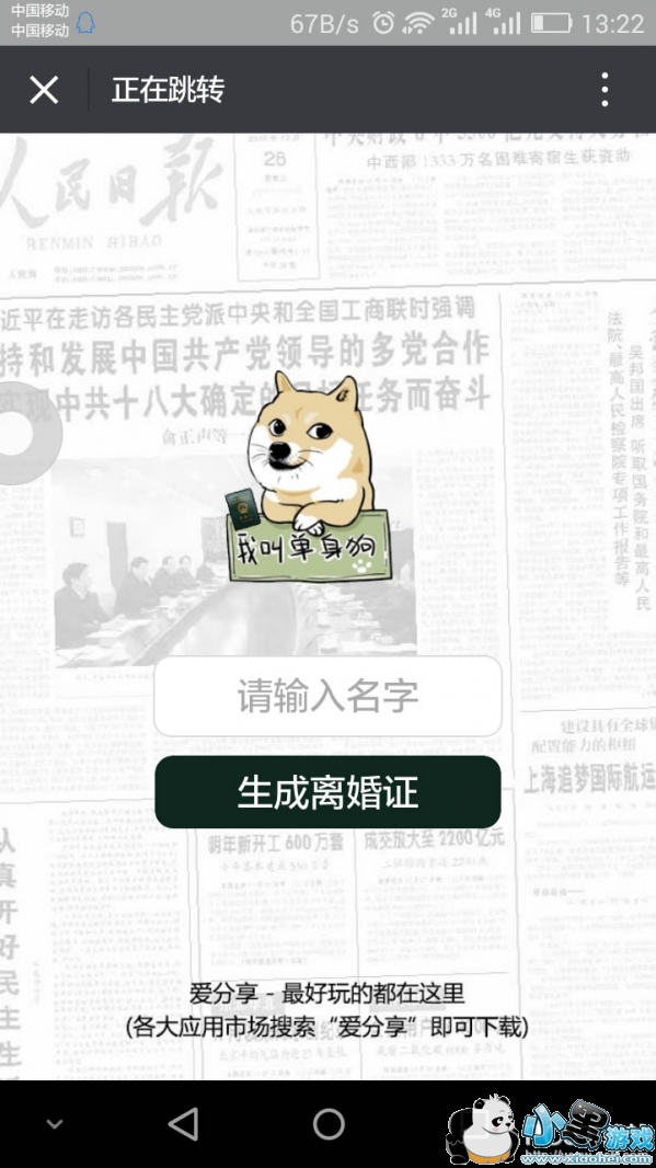 离婚证生成器是什么?最近小编在微信朋友圈中看到小伙伴们在晒‘离婚证’图,完了一个两个管小编要红包安慰心灵,可机智如小编怎么看不出其中有猫腻呢,你们还没结婚呐哪来的离婚?然后小编研究了一下,发现这些‘离婚证’都是一个叫离婚证生成器生成的截图,那么离婚证生成器怎么玩?接下来小编就教教大家吧。