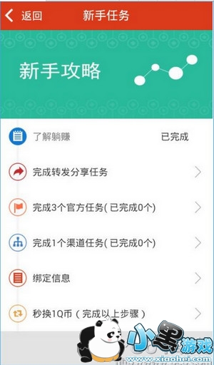 1、新手任务:对于新手完成指定的任务即可得到1Q币哟。