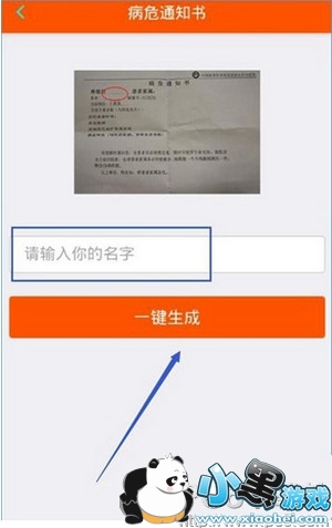 2、然在病危通知书的界面当中,输入你想要输入的名字,接下来点击【一键生成】按钮即可,如下图所示:
