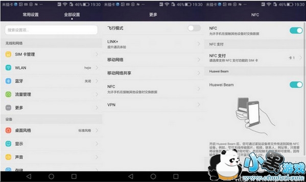 1.打开华为手机界面进入设置中,再找到无线与网络的更多里面,把NFC功能打开。