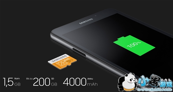 该平板此前已有多次曝光,最终规格也没太大惊喜:7.0寸1280×800分辨率屏幕、黑白两色、实体Home键(可别想指纹识别)、8.7毫米厚度、283克重量、Exynos 3475处理器(四核A7 1.3GHz+Mali-T720)、1.5GB内存、8GB可扩展存储、500+200万像素摄像头、802.11n Wi-Fi、4000mAh电池(9小时视频/100小时音乐)、安卓5.1操作系统。