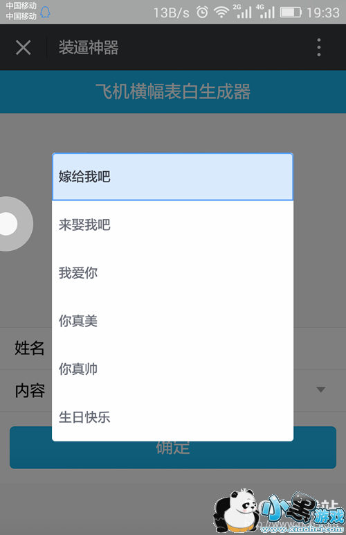 2).输入你需要生成的姓名(需要注意一下,这里有字数限制),以及需要横幅显示的内容